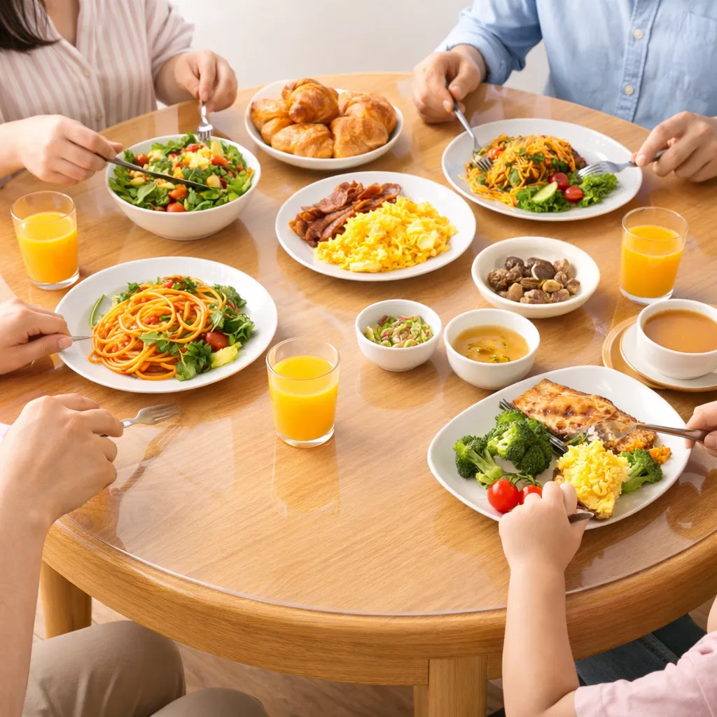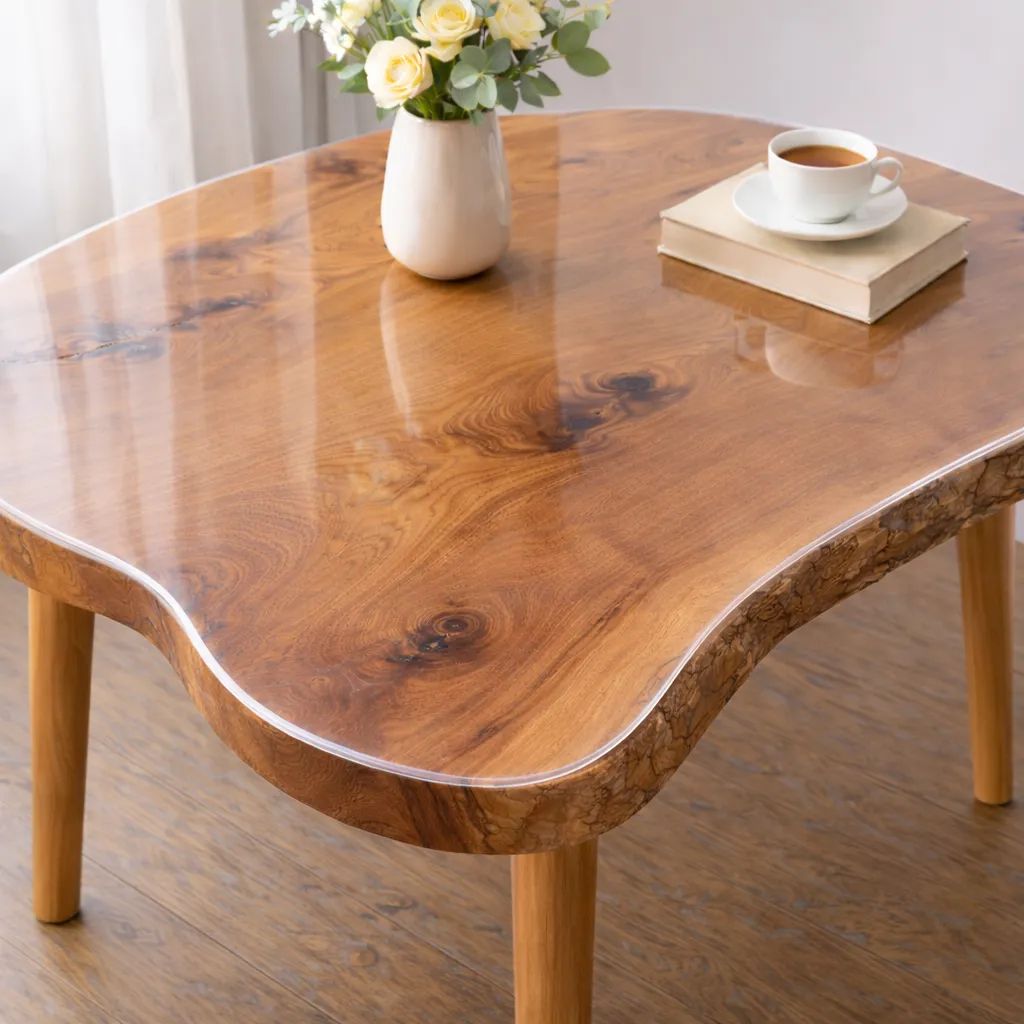 透明テーブルマットは、長期間使うと少しずつ色味が変わることがあります。透明感が失われ、黄みや青みが気になってきた場合は買い替えのタイミングです。テーブル本来の美しさを活かすためにも、透明度の高いマットへの見直しがおすすめです。